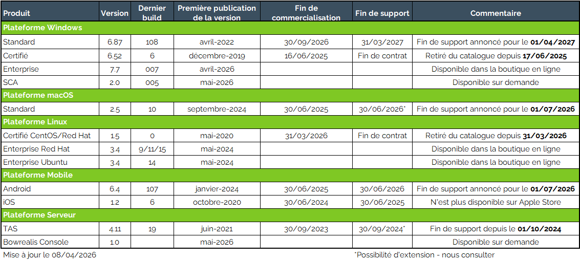 La fin de vie de la version majeure d’un produit est annoncée douze mois à l’avance pour permettre à nos clients d’anticiper et de préparer un plan de migration.